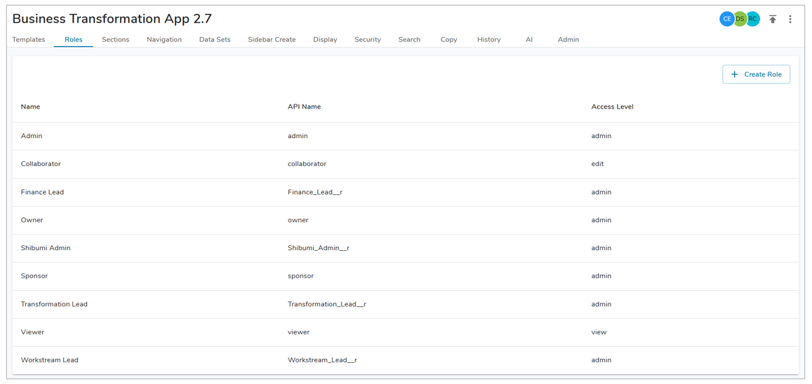 - By default, a set of standard roles will be available: Owner, Sponsor, Admin, Collaborator, and Viewer.