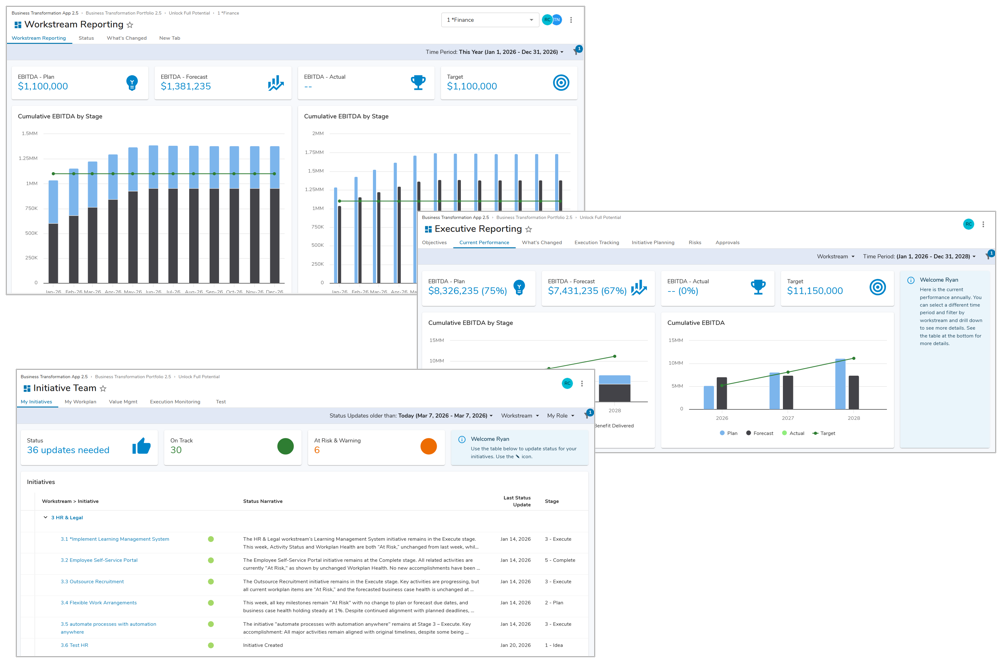 - They are context-based, meaning that the data being pulled into a dashboard is pulled from instances of the template type selected (Workstream, Initiative, Milestone, etc.).