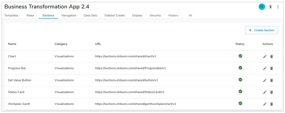 All sections can be edited by clicking the edit (pencil) icon in the Actions column.