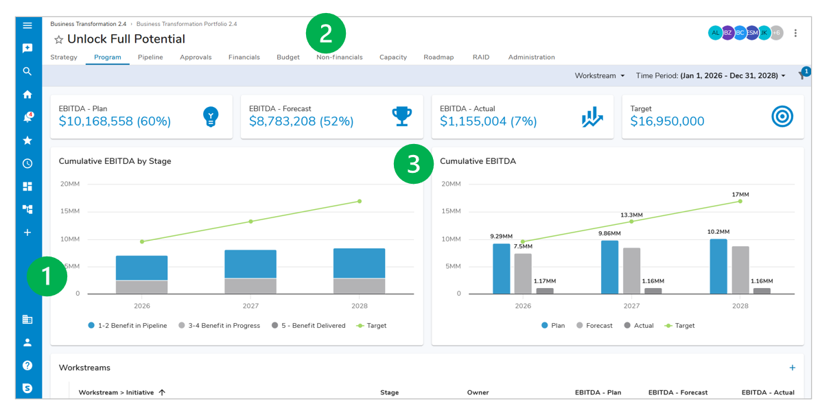 • Expands the navigation sidebar to view more details or collapses to hide it for more workspace.