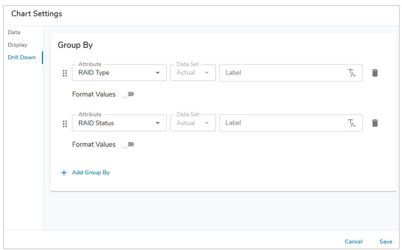 - Sliced by Checkbox: Options can be re-ordered by clicking and dragging on the grabber icon. Labels and colors can be set as well.
